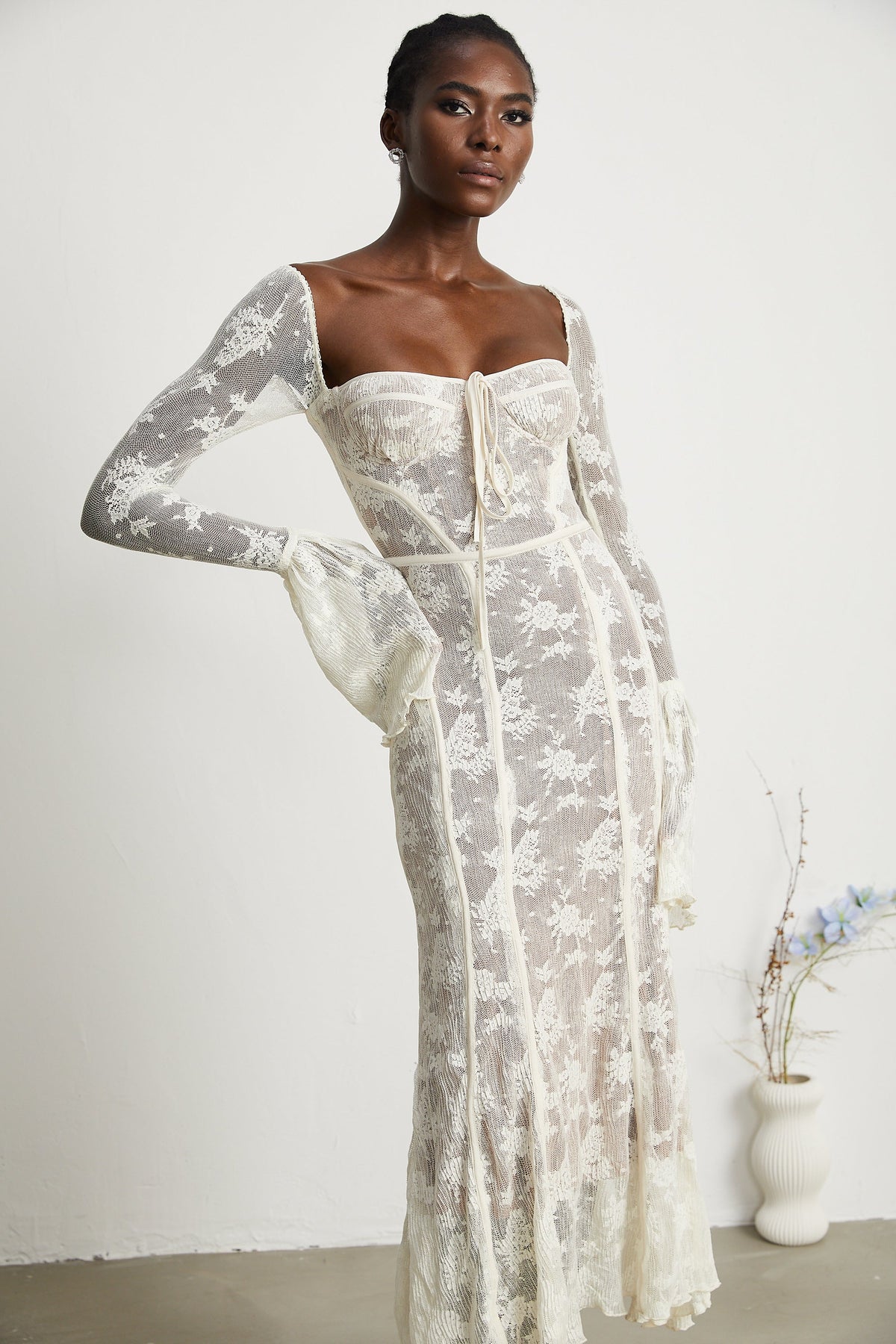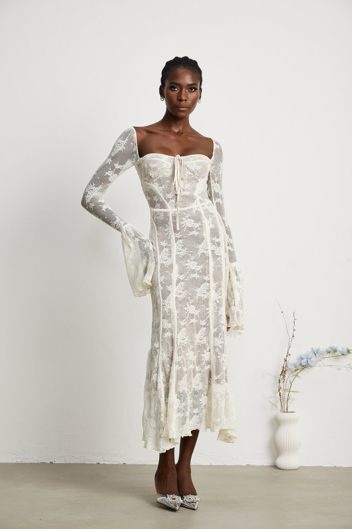 Marlene White Flared Lace Maxi Dress
