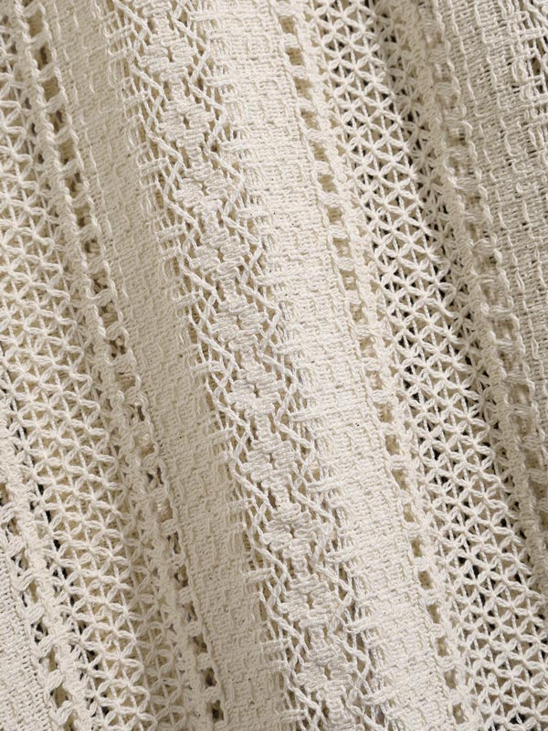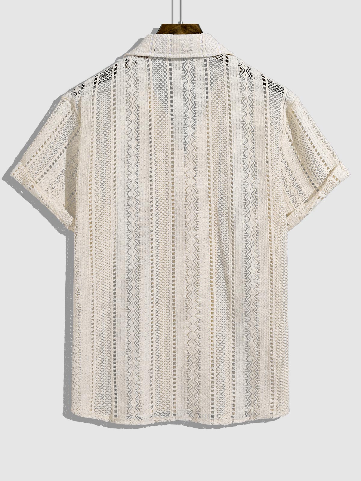 Men's Solid Color Hollow Cuban Collar Crochet Short Sleeve Shirt