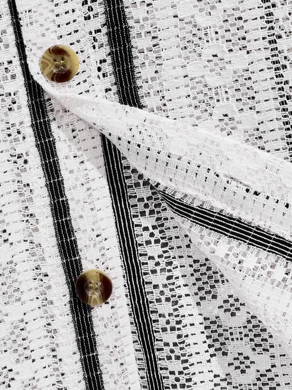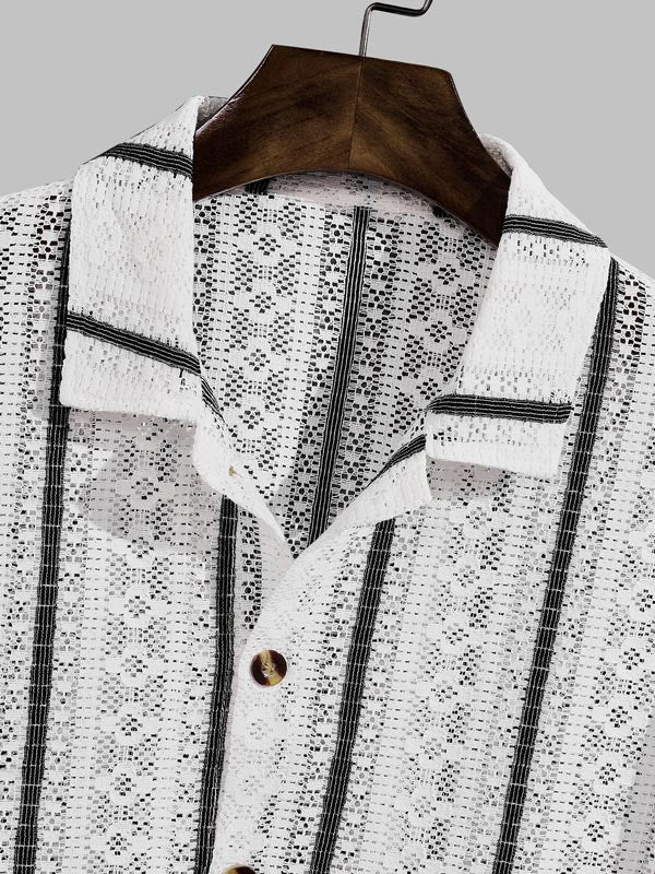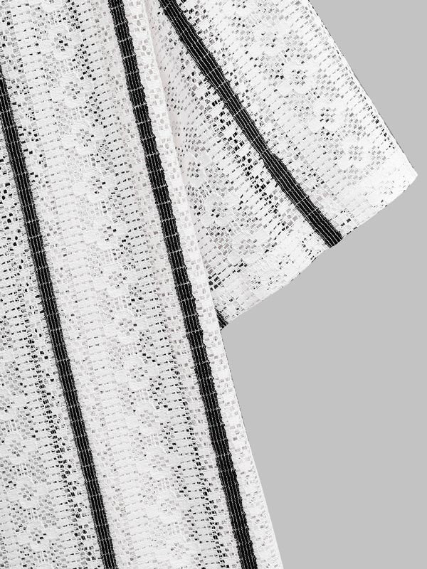 Men's Striped Hollow Knitted Casual Short Sleeve Shirt