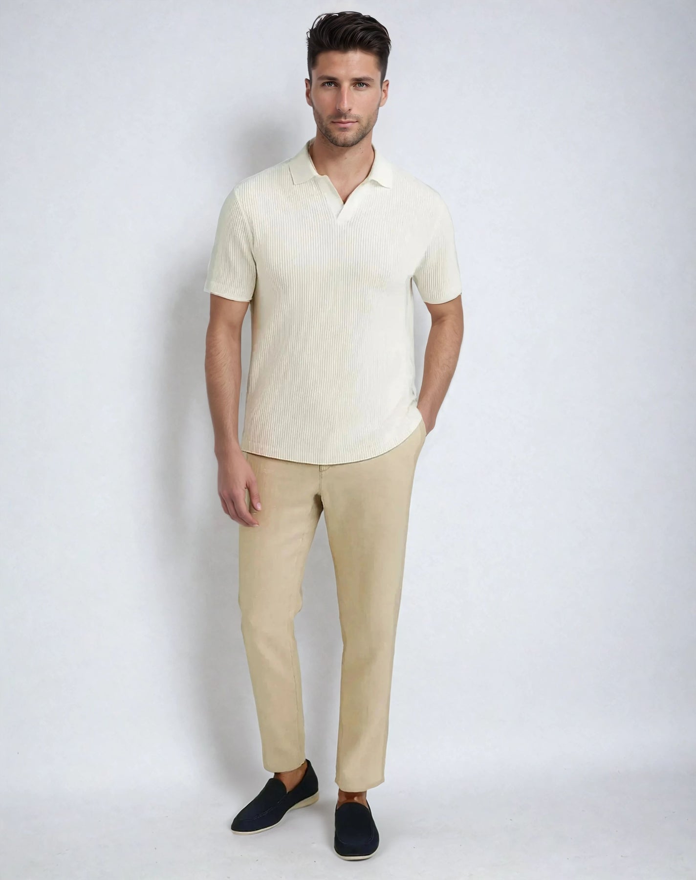 Ribbed Polo With Open Collar - Essential Edition