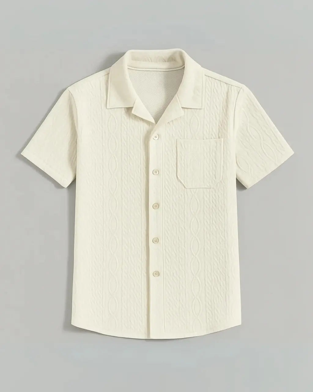 Simplicity meets sophistication for ultimate relaxation. This two-piece set gives new meaning to casual by wearing the textured short-sleeved shirt over a simple round-neck T-shirt that pairs effortlessly with relaxed shorts.